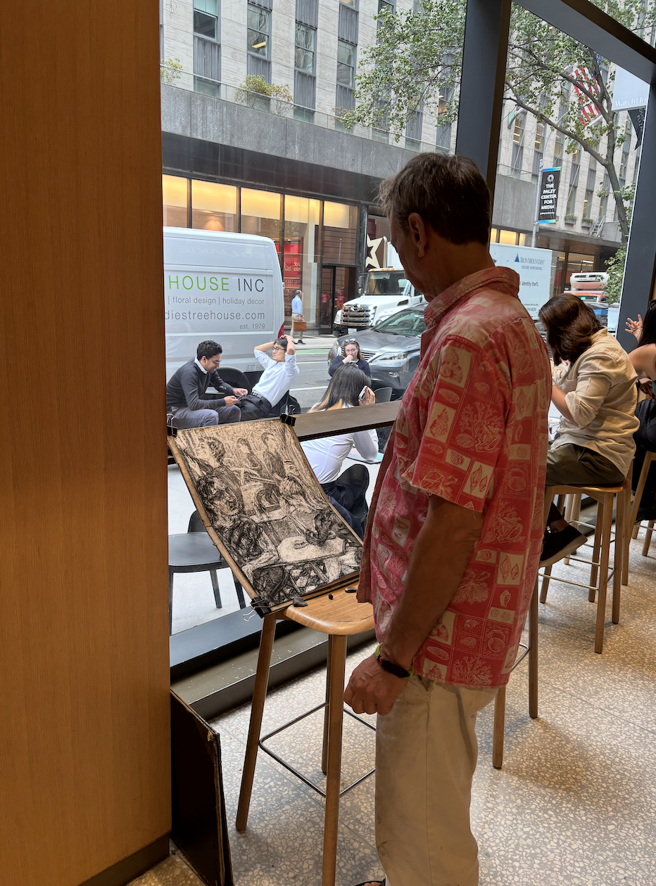 다큐멘터리. 회사. 여행 중. 뉴스레터. 규칙들. 소개하고 여쭈었다. “혹시 괜찮으시면 집에 가서 같이 식사를 할 수 있을까요?” “하하, 재미있는 규칙이네. 그래! 여기로 연락해.” 메일 주소를 건넨다. 자신의 화판에 내 이름을 받아 적는다. 다음 주에 마침 뉴올리언스에서 아들이 오니 시간 맞춰 보자고 하신다. 아들은 세계 여러 도시에서 자라 미국인 같지가 않다고, 그래서 너무 좋다고. 이렇게 ‘섭외 편’은 성공. ‘실행 편’의 성공 여부와 후기는 커밍 순이다.