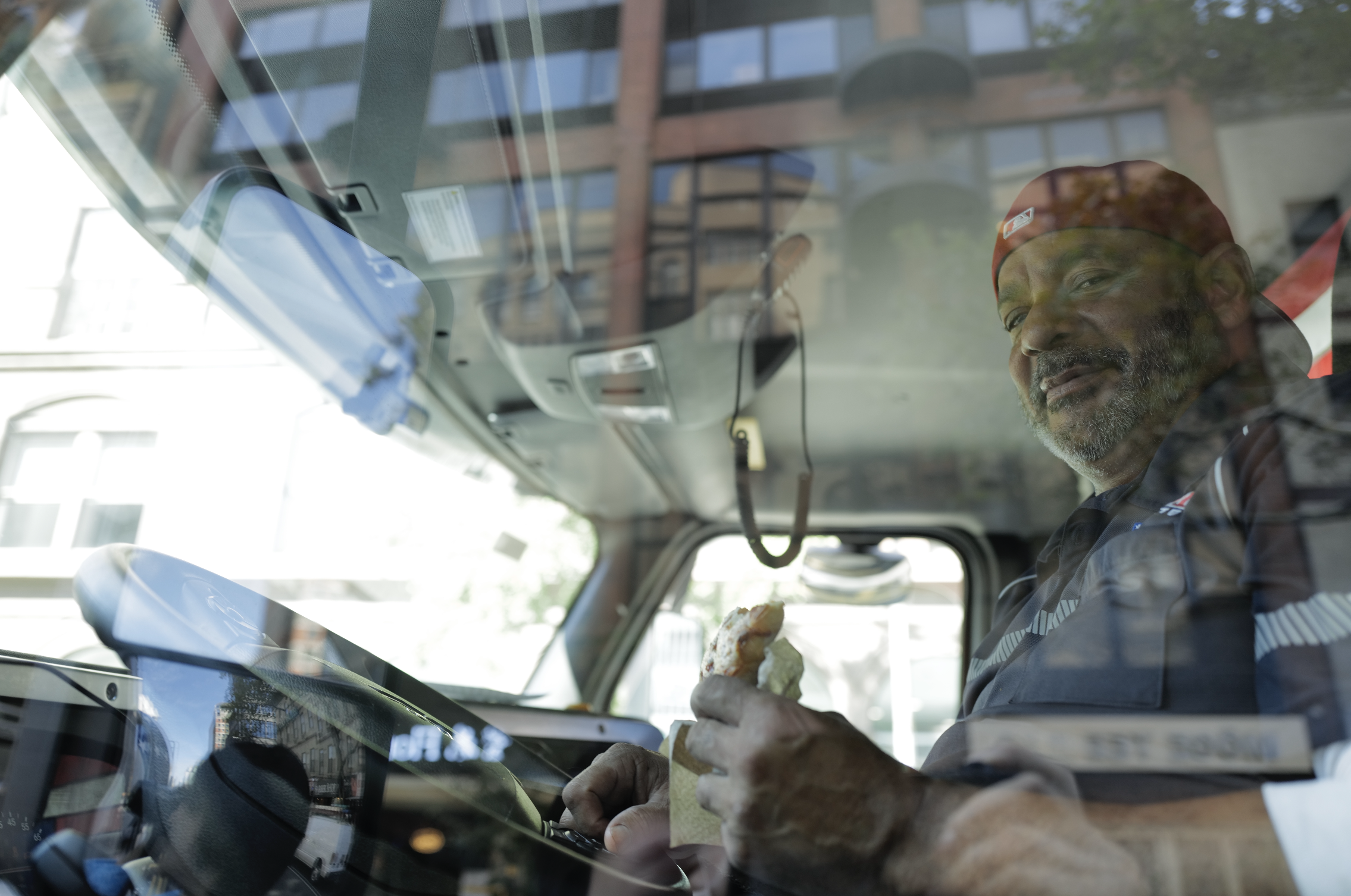 ‘여러 나라의 레미콘 사진을 모아도 재밌겠네.’ 오? 여러 나라의 레미콘 운전사 사진을 찍어도 재밌겠다. 창문 너머로 뭔가를 먹고 있는 운전사가 보인다. 좀 더 다가가 사진 찍어도 되냐고 손짓으로 허락을 구한다. 내 카메라는 28mm 단렌즈. 여기서 찍어서는 안에 누가 있는지 보이지도 않는다. 길을 건너 레미콘 바로 옆까지 간다. 아직도 멀다. 사이드미러를 잡고 차 위로 올라탄다. 아빠 레미콘에 타 봤기에 망설임 없이 할 수 있다. 한 손에 피자빵을 든 운전사가 나를 보고 환하게 웃는다. 창문이 열린다. “우리 아빠가 한국에서 레미콘 운전하거든. 그래서 여행하면서 여러 나라의 레미콘 운전사 사진을 찍고 있어.” 지금 막 찍기 시작해 놓고 나도 모르게 뻥을 친다.