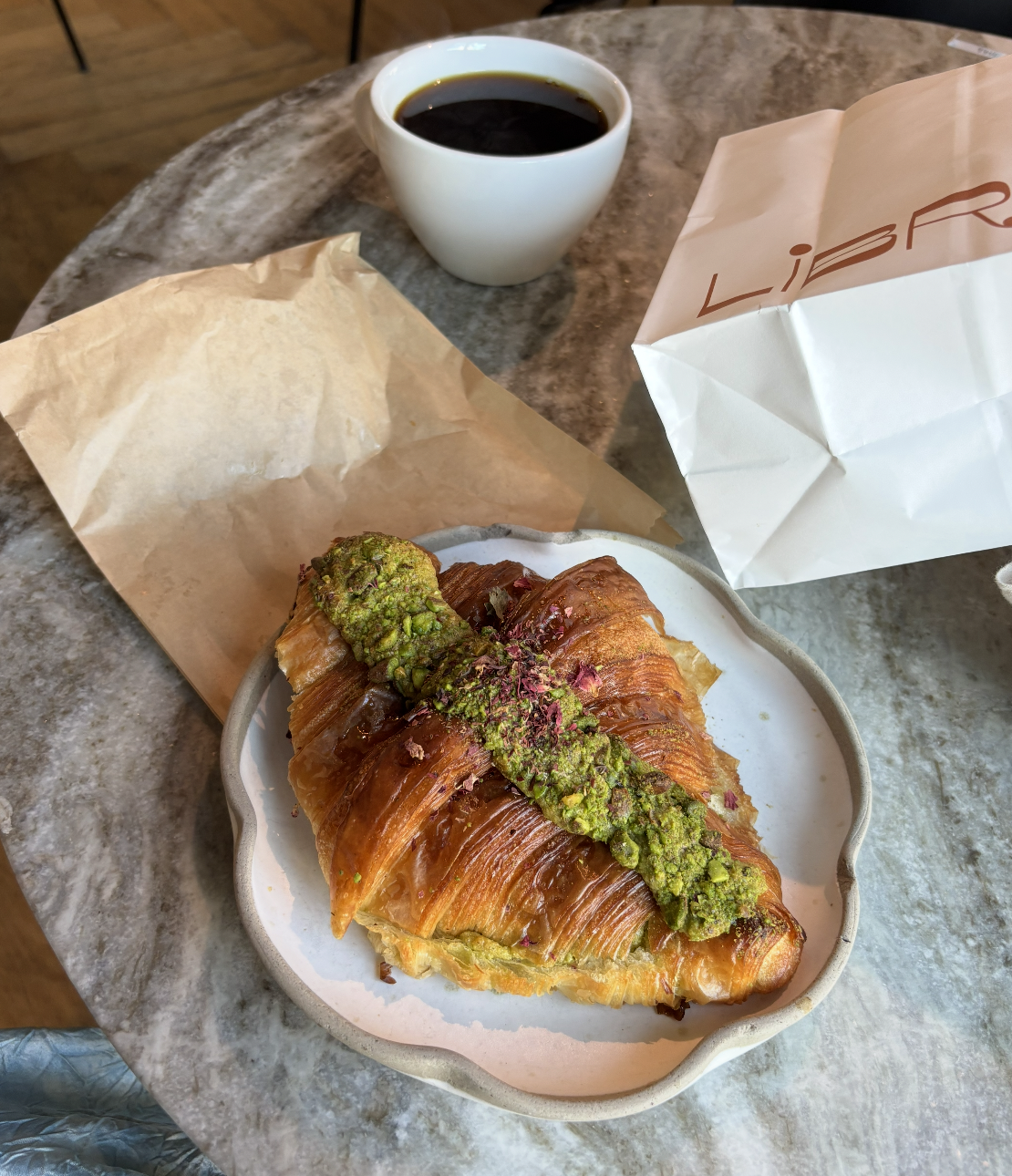 아무리 피스타끼오 크림이 가득 찼대도 크로와상이 무려 8.5달러, 환율 1,400원 기준 11,900원이다. 수입 없는 장기 여행자로서 손 떨리는 금액이지만 자비롭고 아름다운 내 친구 임다운이 후한 구독료를 보내주었기에 과감히 블랙커피도 한 잔 시키고 팁도 냈다. 맛은 어땠냐고? 할 수만 있다면 뉴스레터 친구들에게 배민으로 하나씩 보내주고 싶다. 고마워 다운아! 추신. 구독료들 보내시라는 얘기 진짜로 아닙니다.